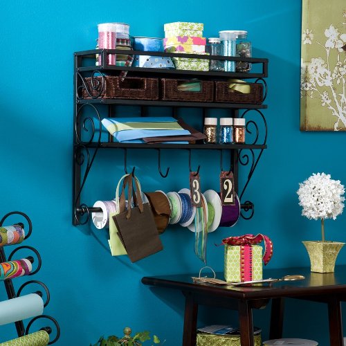 WALL MOUNT CRAFT STORAGE RACK-MATT BLACK METAL WITH ESPRESSO ...